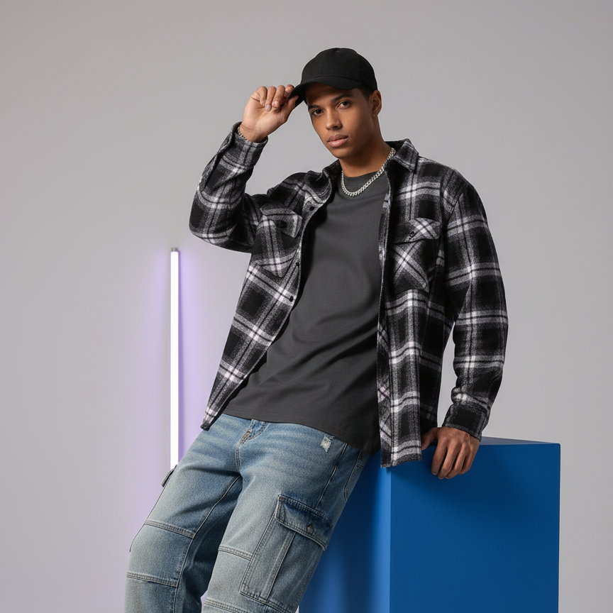 Plus Size Plaid-Collar Sweatshirt — Oversized Long Sleeve