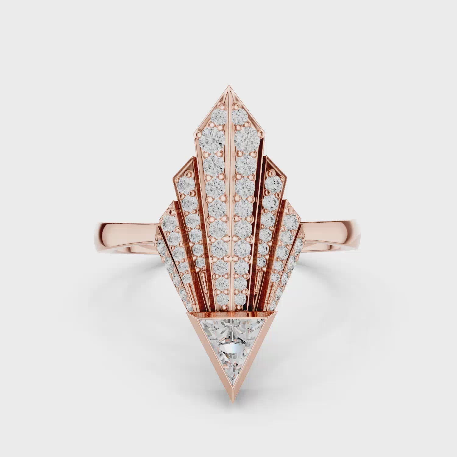 Why You’ll Love It: A geometric, spear-shaped profile with modern Art Deco influence, exceptional brilliance, and a striking presence on the hand. A perfect cocktail ring for evening looks, celebrations, gifting, or anyone who loves sculptural fine jewelry. Available in 10K/14K Gold or 925 Silver with full customization options.